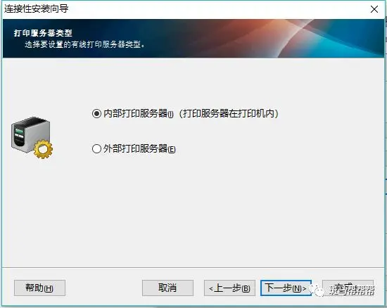 选择内置打印服务器。老的并口转网口的适配器选择”外部打印服务器”