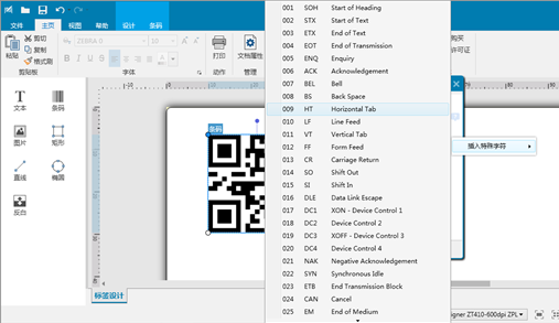 二. ZebraDesigner 3条码打印怎么插入控制符号?