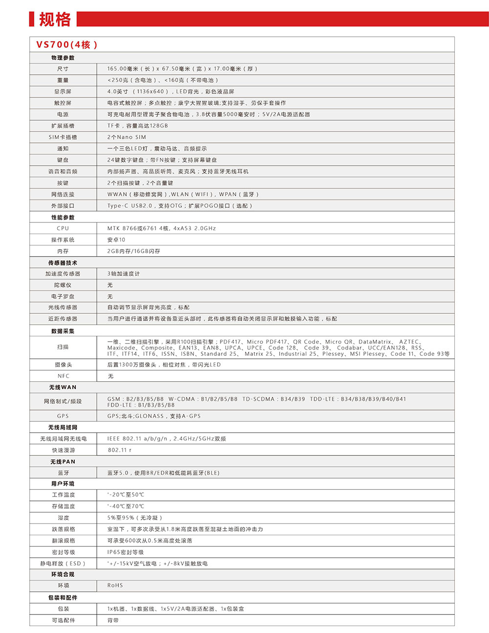 VS700可多次承受从1.8米处跌落至混凝土地面的冲击力,承受600次从0.5米高度处滚落仍可正常工作,防水防尘能力达IP65。